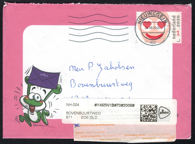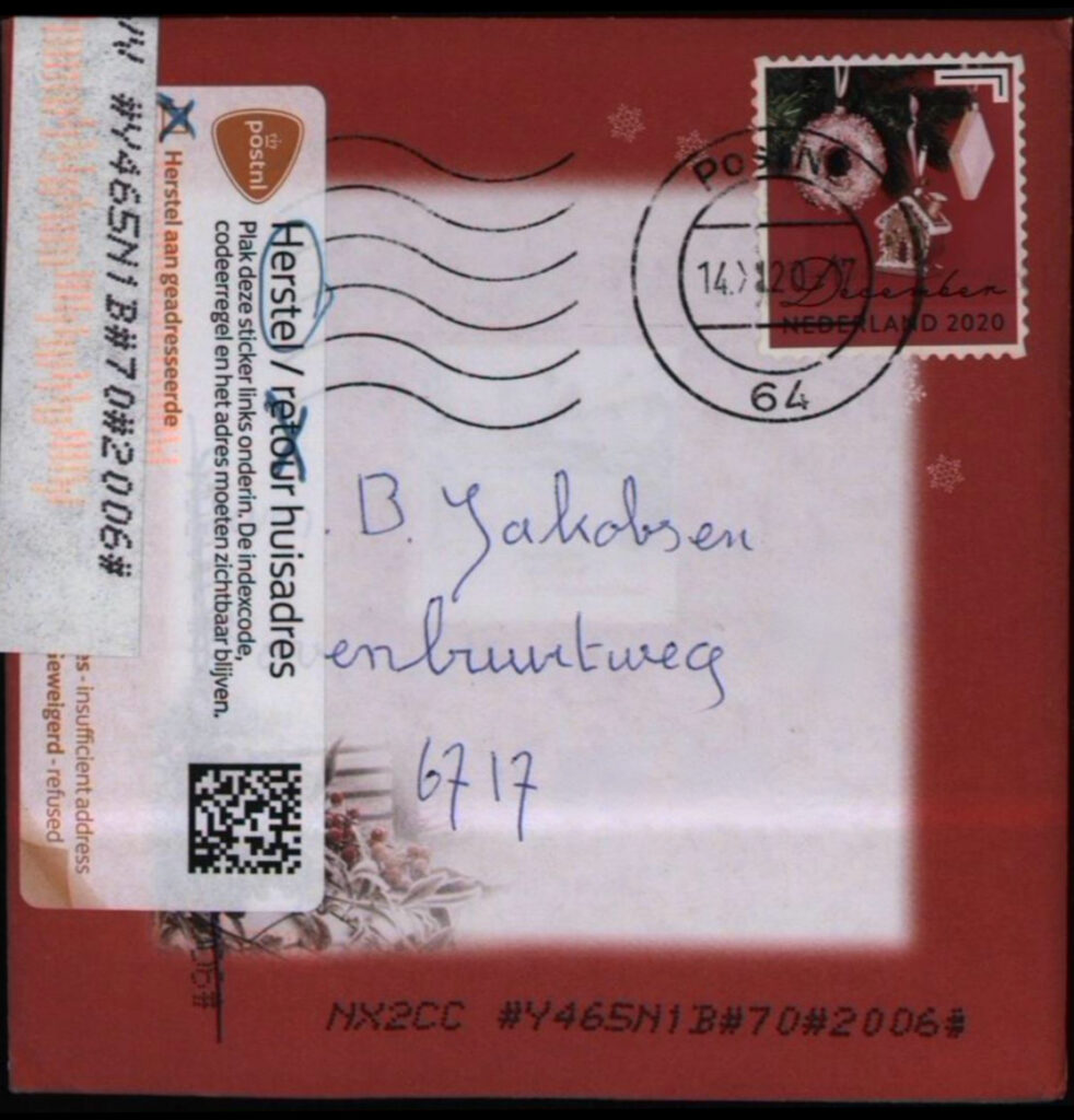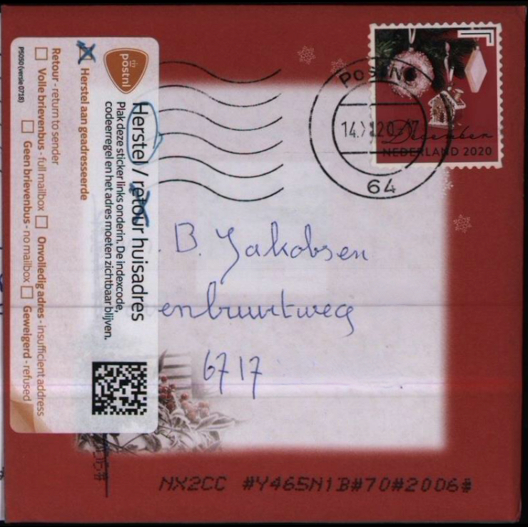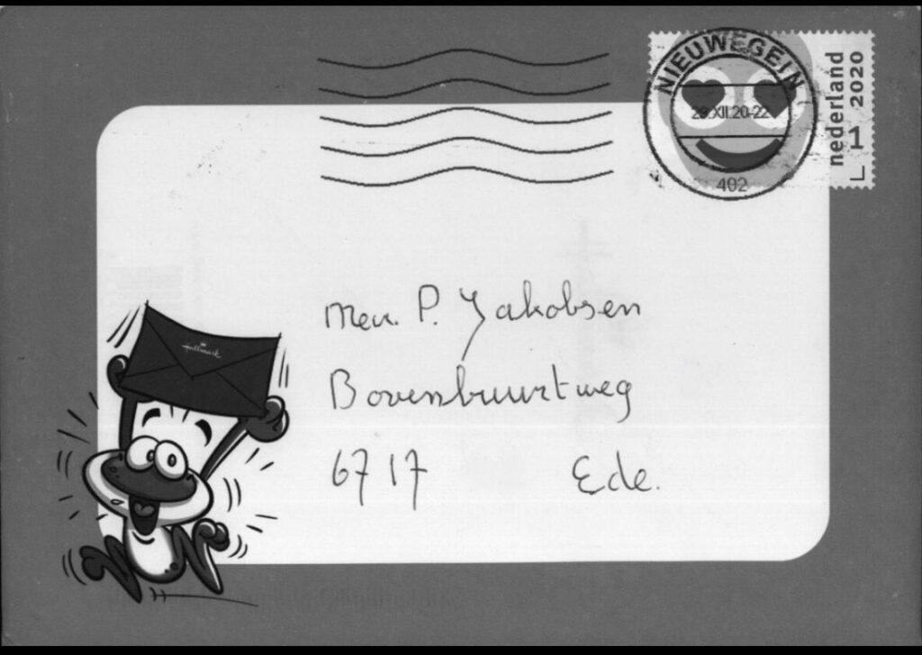 Hiermee kan de sorteermachine nog niet feilloos mee omgaan. Ook in 2021 ging het weer niet correct. Die kaart werd op de 29e december verwacht. Niet dus. zo ook niet op de 30e en de 31e december. Maar vrij uniek de kaart werd alsnog op de 1e januari 2022 per postkoerier bezorgt. Wel aardig en alsnog op tijd bezorgt voor de verjaardag.
